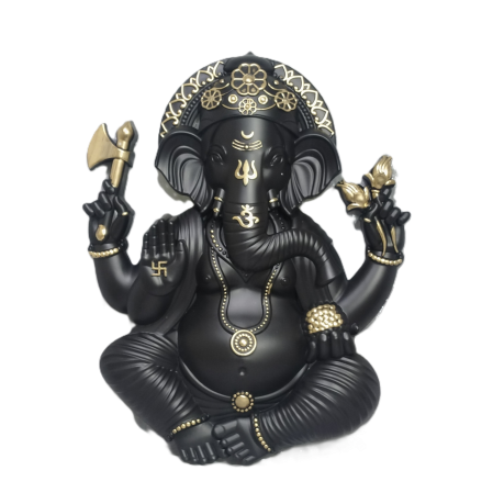 Crafted from high-quality polyresin and finished with elegant matte black and gold tones, this masterpiece represents wisdom, success, and good fortune.