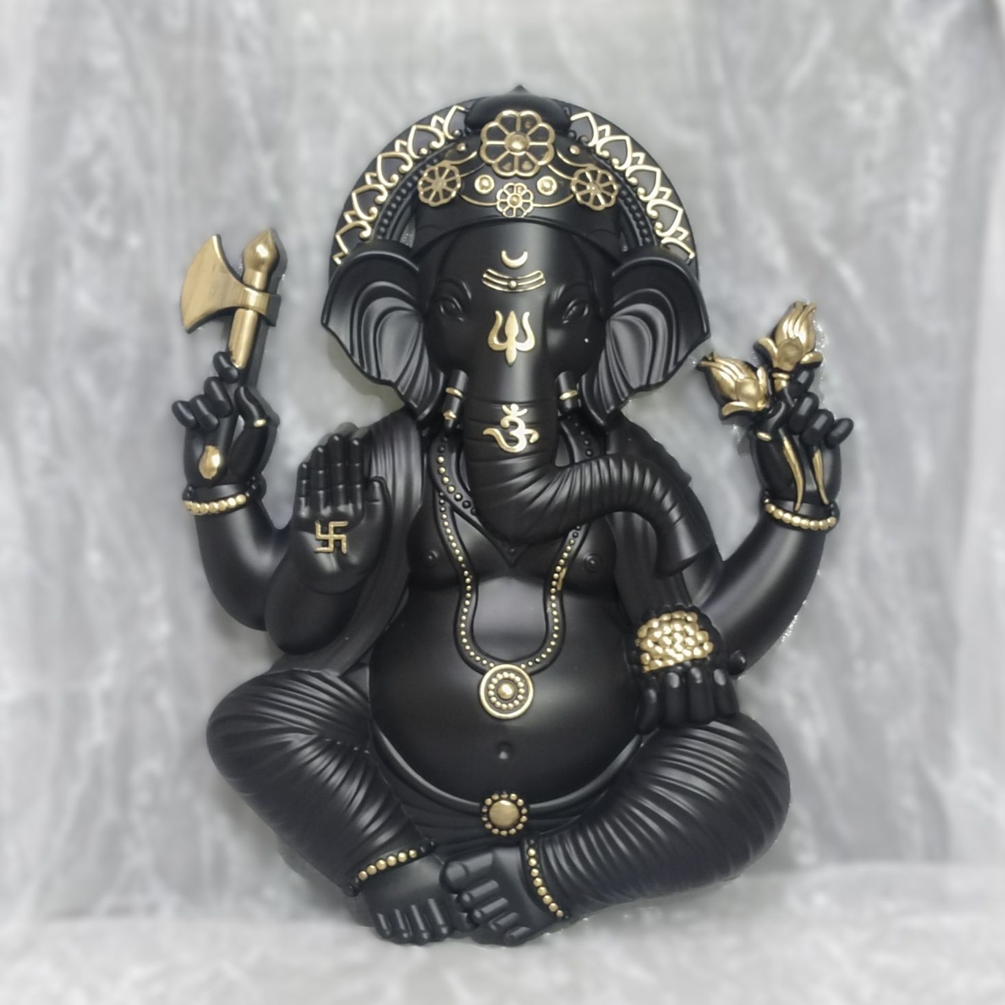 Bring home the blessings of Lord Ganesha with this stunning Black & Gold Wall Hanging Idol from POZHI Decor.